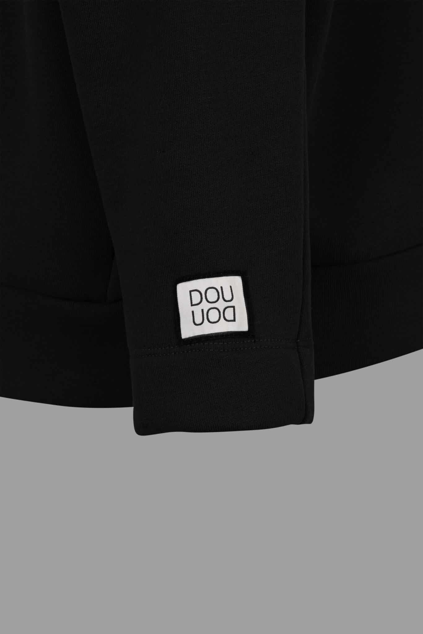 Pure and refined lines from fine fabrics characterize the sweatshirt garments. Description: Color: black / Green model: comfortable, modern and essential design hoodie embellished with douuod logo. composition:65% CO, 35%PL.