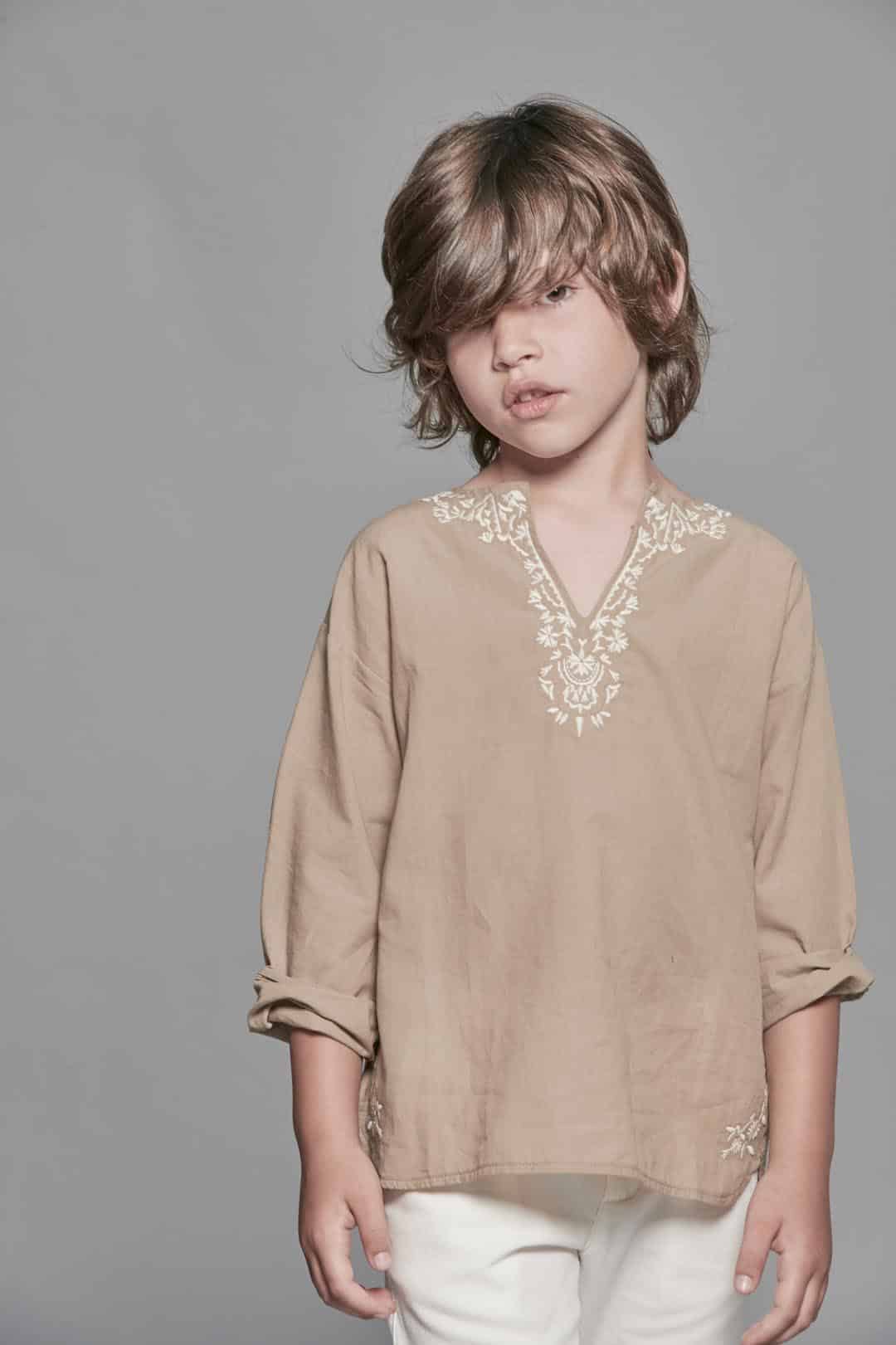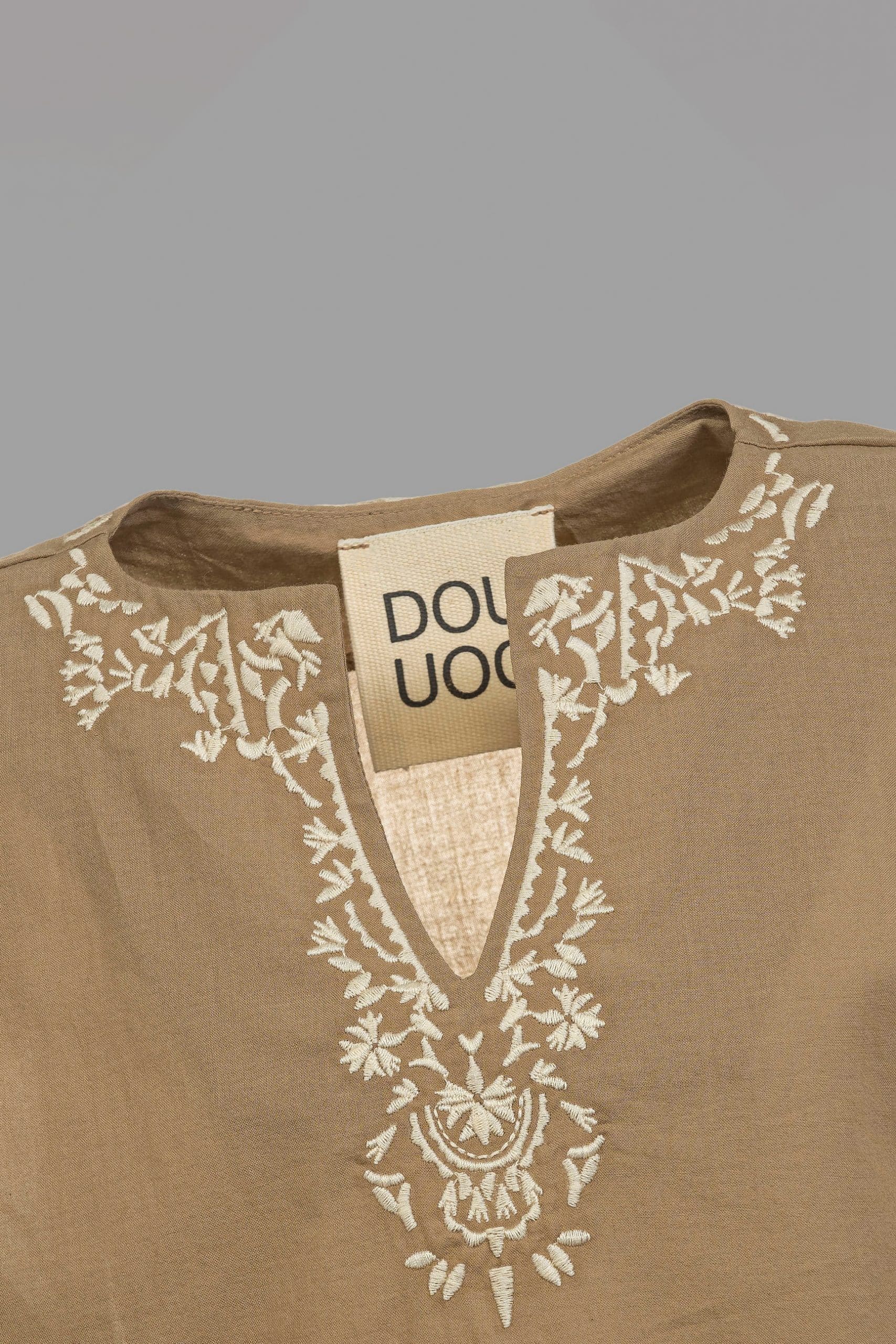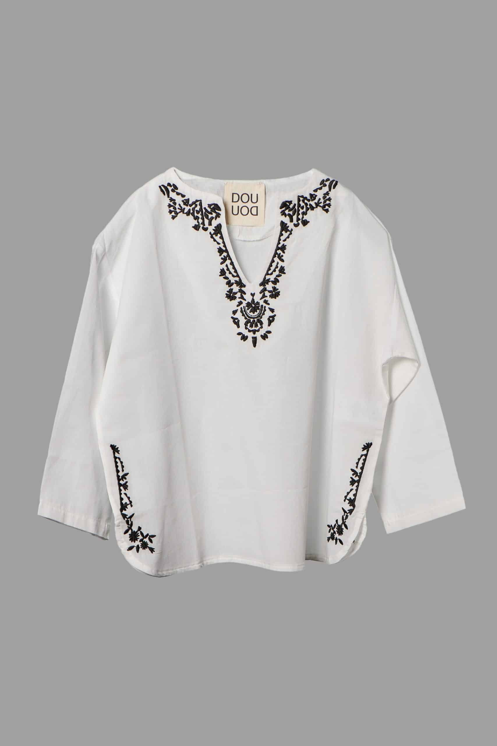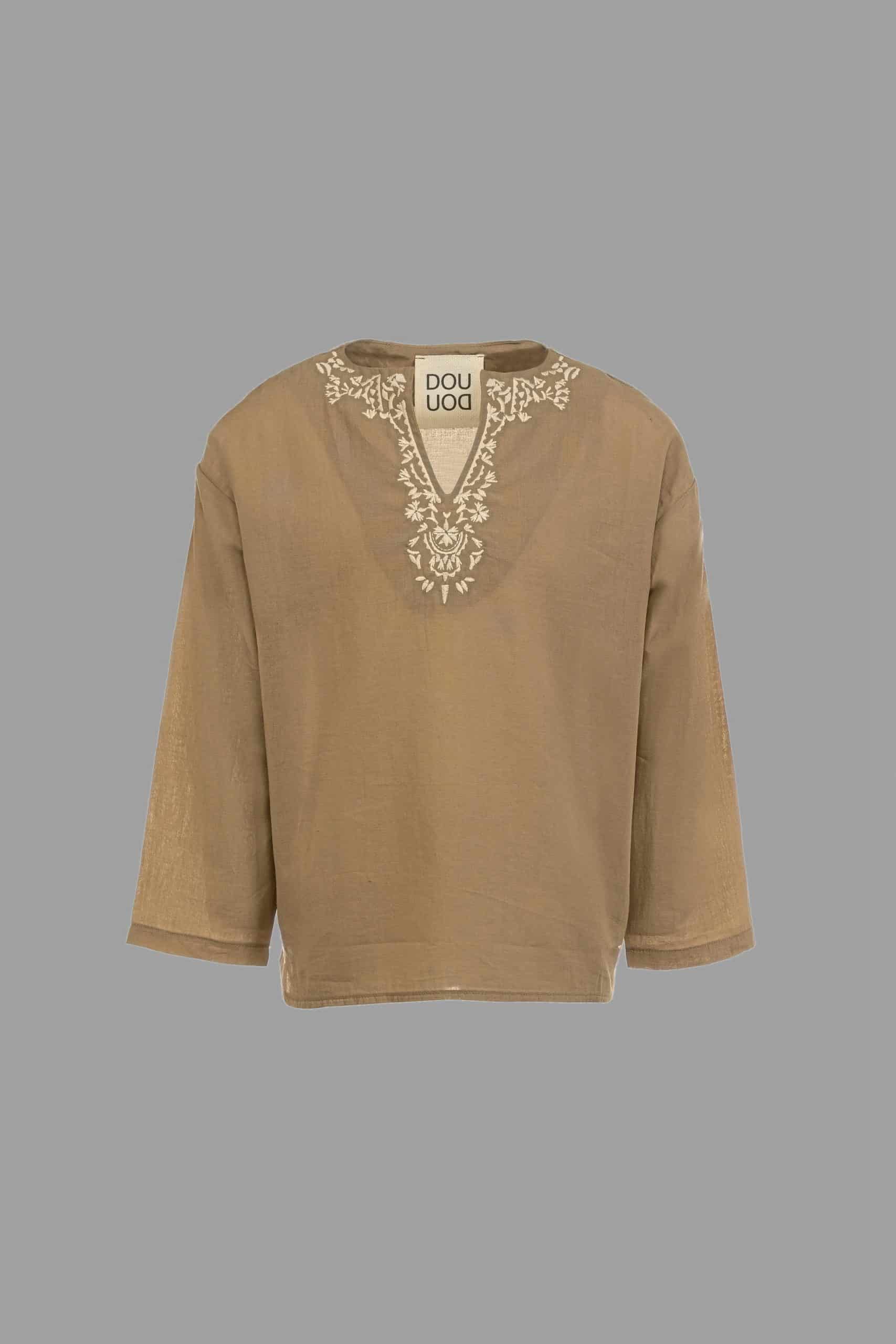KAFTAN SHIRT WITH NECK EMBROIDERY - 100 % CO