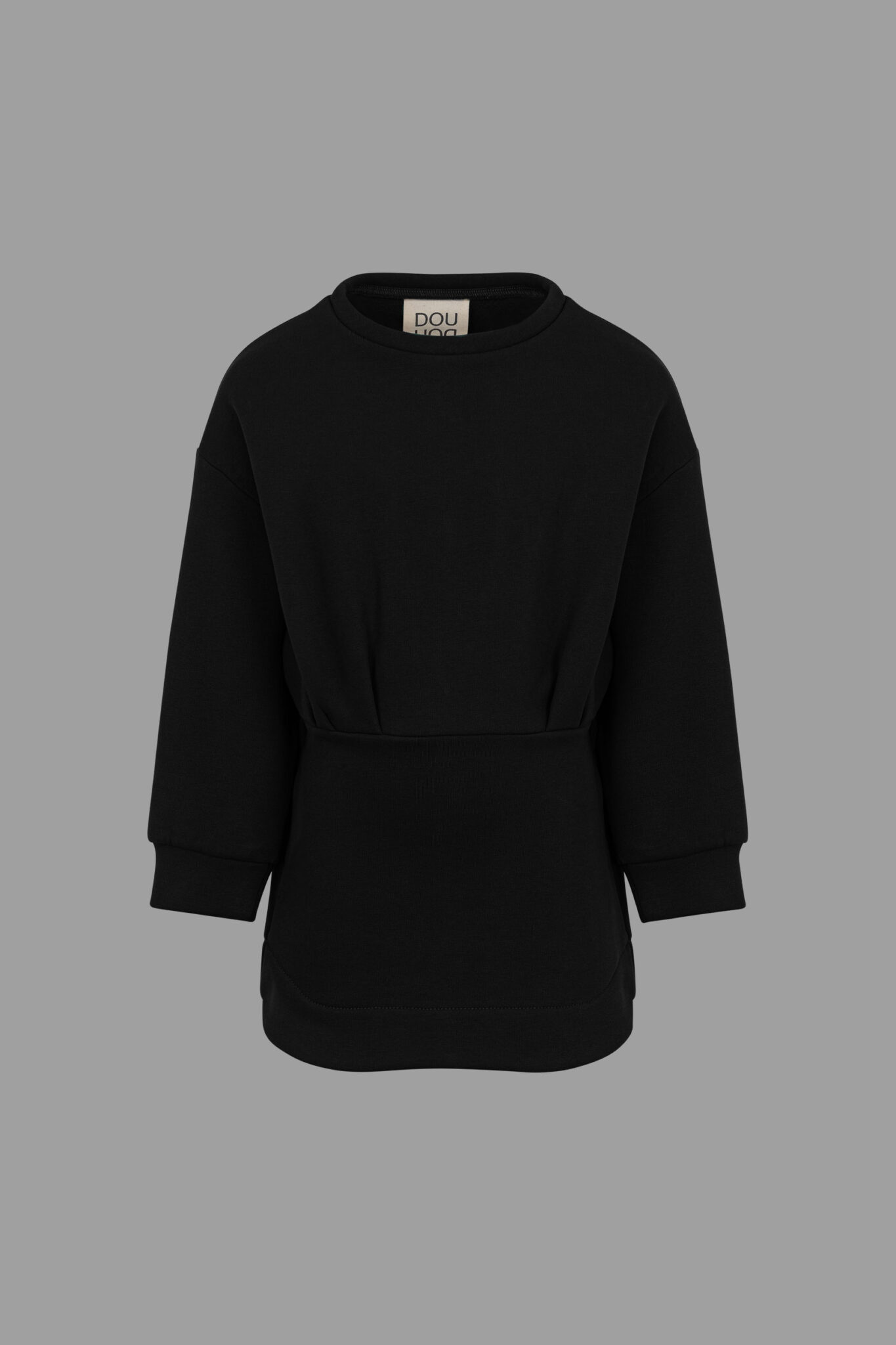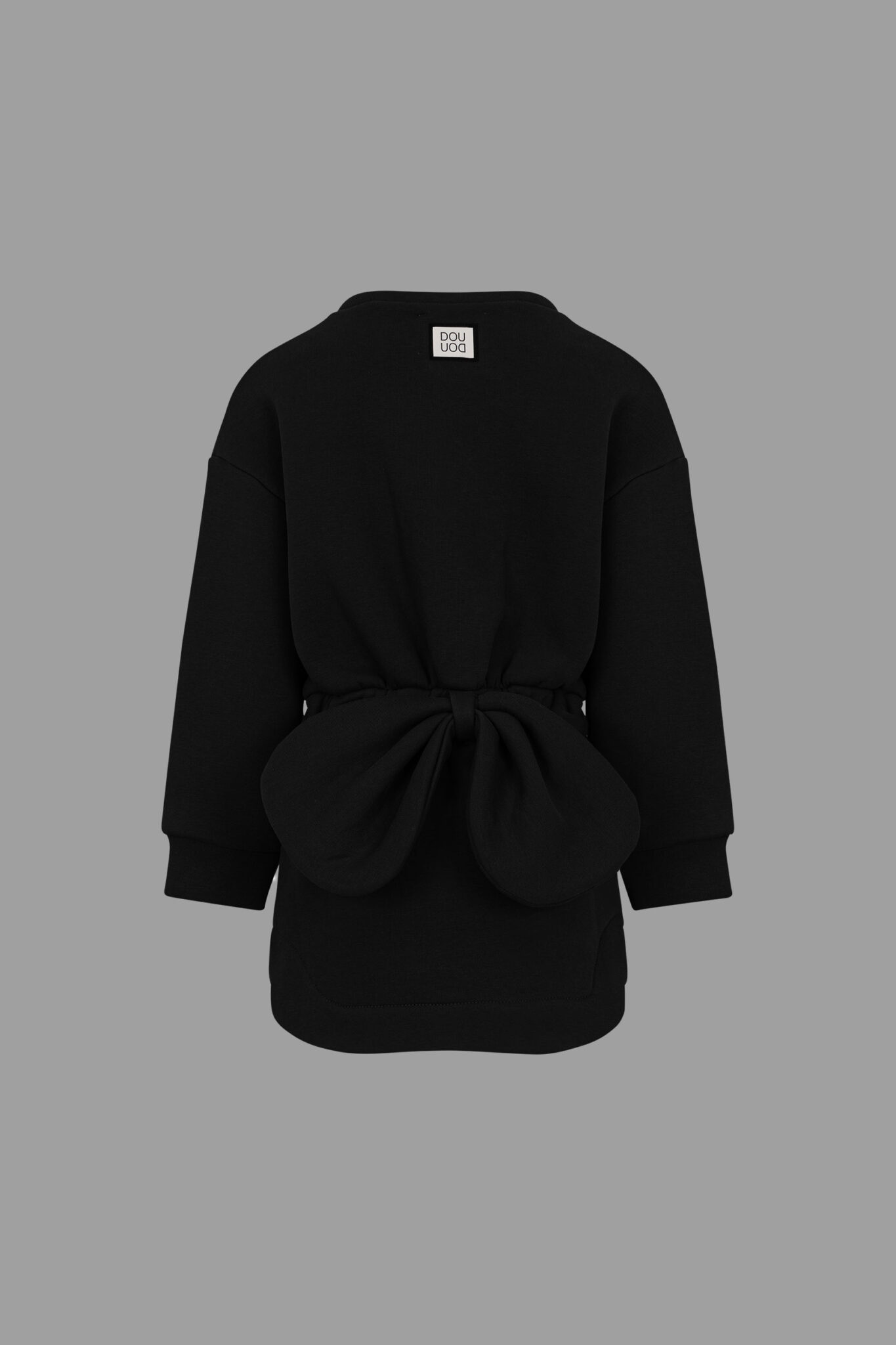 model: Green fleece short dress with elastic waist, featuring Douuod's iconic bows (removable), which give a chic and sophisticated touch to a casual and modern style.