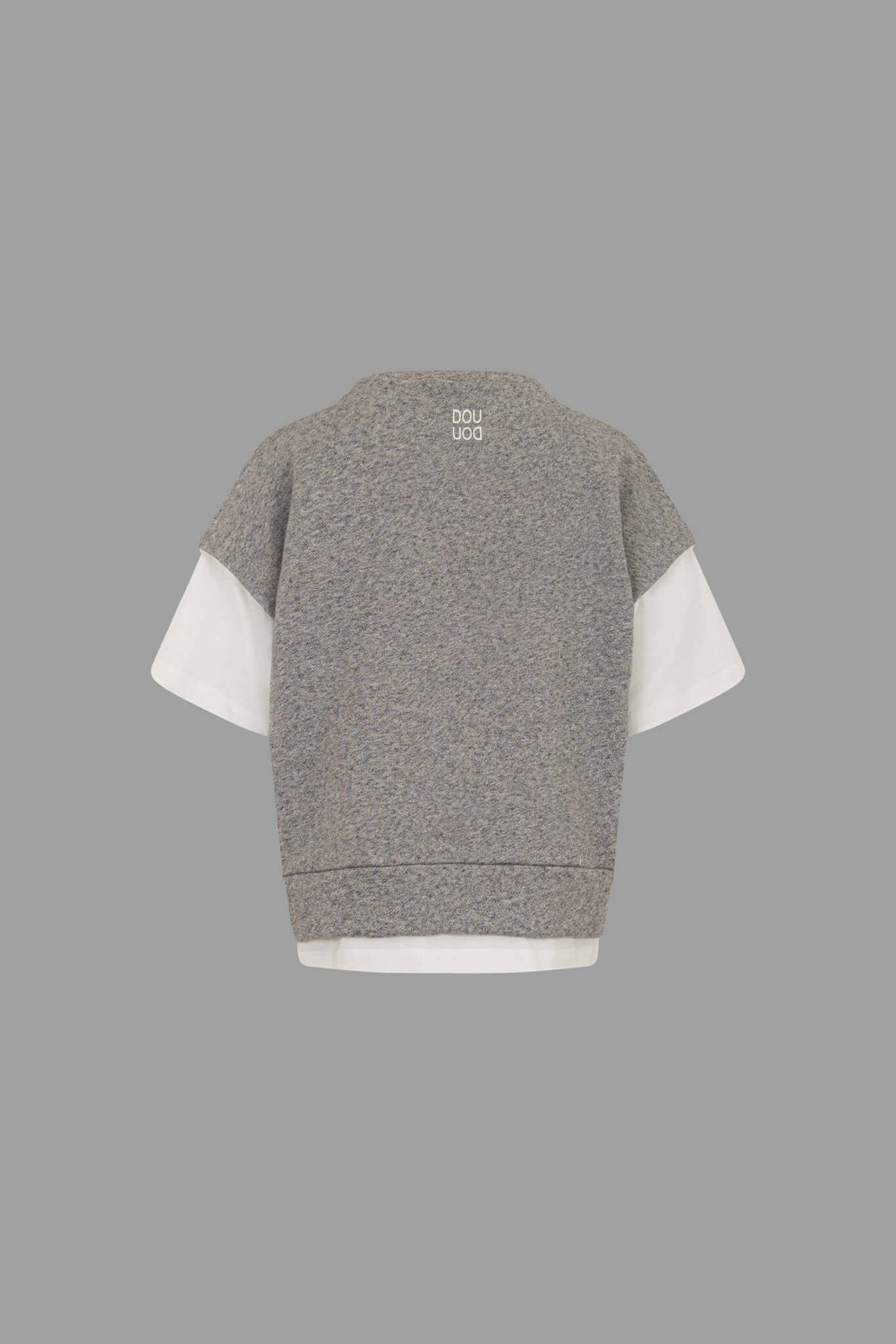 modello: T-shirt felpata effetto layering: felpa grigia con doppia manica in cotone bianco a contrasto.