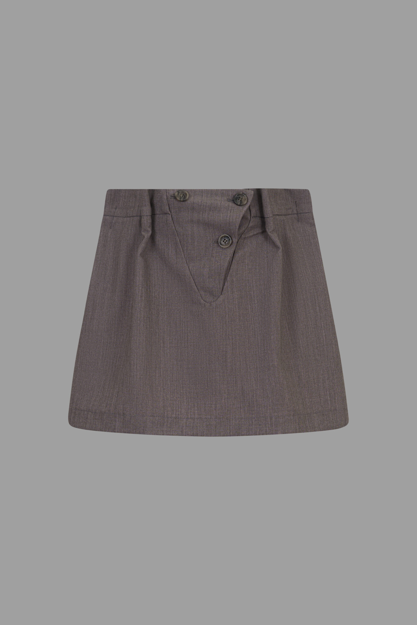 modello: Gonna in fresco lana arricciata con abbottonatura frontale e leggere pants.