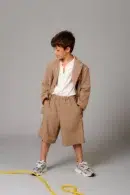 modello: Bermuda in fresco di lana dal fit leggermente over, con elastico in vita e tasche laterali composizone: 72%PL, 23%VI, 5%EA