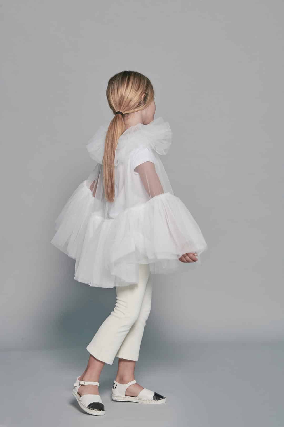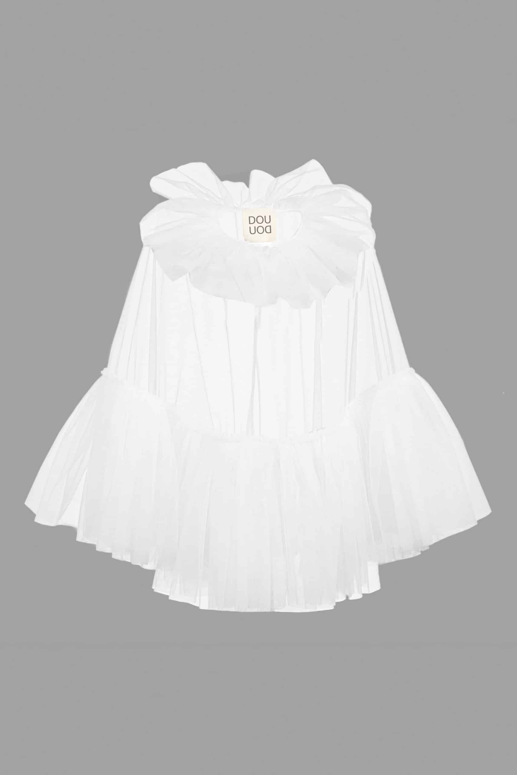 MANTELLA IN TULLE CON RICCA BALZA E COLLO A COROLLA ARRICCIATO - 100% PA
